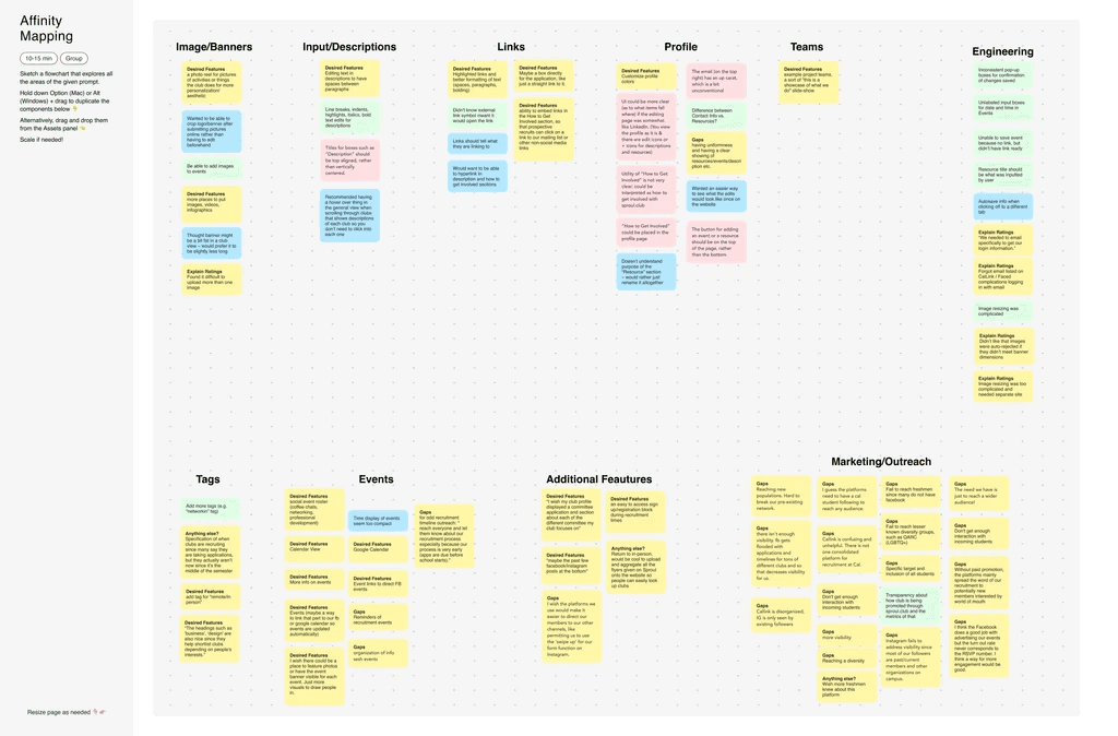 We then mind mapped the detailed responses and suggestions from the survey to prioritize revisions needed for the club page.