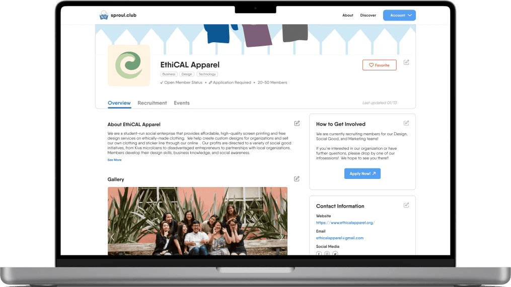 With the goal of sproul.club being the one stop shop for club recruitment at UC Berkeley and the research completed, we narrowed down on a few features we decided to prioritize for the first launch.